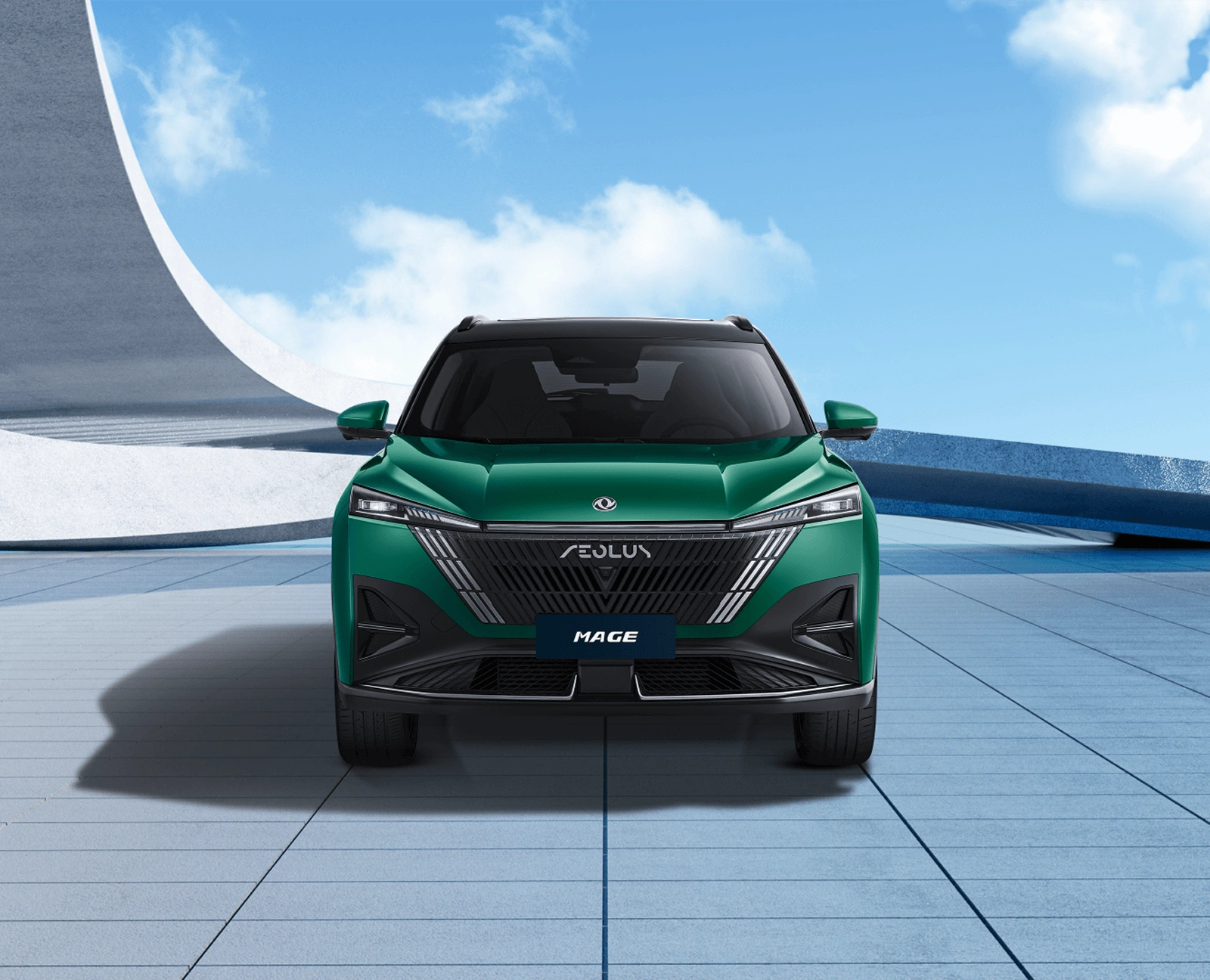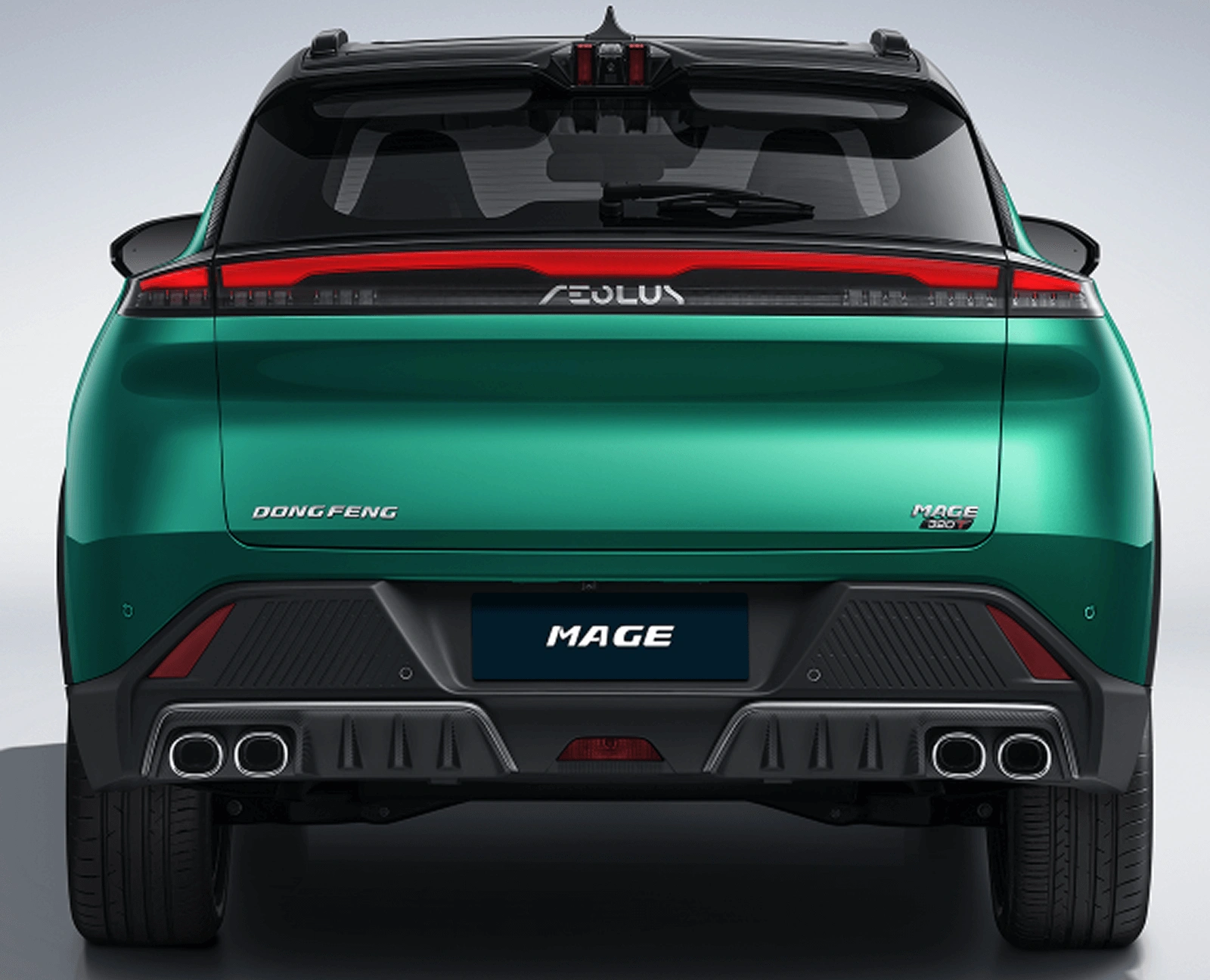 Dongfeng MAGE izstopa z agresivno in futuristično obliko, ki jo zaznamujejo ostri robovi, lebdeča strešna linija in športni zadnji spojler. Sprednji del vozila dopolnjujejo LED žarometi z avtomatskim preklapljanjem dolgih in kratkih luči ter široka sprednja maska za samozavesten nastop.